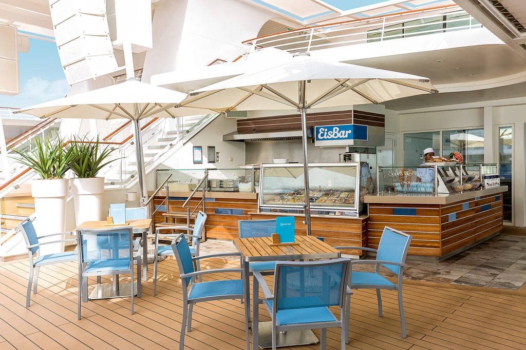 Im Heckbereich, der sogenannten Großen Freiheit, befinden sich weitere Gastronomie-Highlights: das italienische Restaurant La Spezia, das Steakhouse Surf & Turf mit Innen- und Außenbereich sowie die gemütliche Kaffeelounge auf Deck 4, die mit Kaffeespezialitäten, Frühstücksangeboten und süßen Leckereien verwöhnt. Ergänzt wird das kulinarische Ensemble vom eleganten Champagner Treff auf der Außenterrasse von Deck 5. Ein idealer Ort für besondere Genussmomente mit Blick auf die Heckwelle.