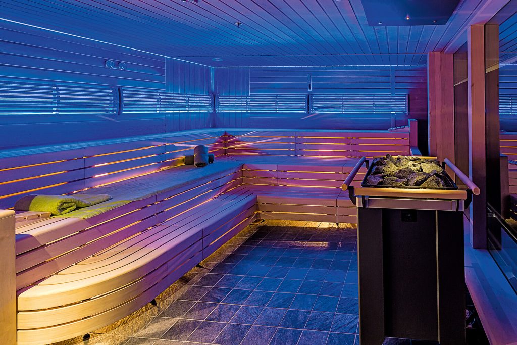 Eine besondere Oase ist die überdachte Lagune. Dort kann man wetterunabhängig schwimmen, in Whirlpools entspannen oder auf den zahlreichen Liegen die Seele baumeln lassen kann. Dort finden Sie zahlreiche Saunen wie zum Beispiel die Horizont Sauna, die unten auf dem Bild abgebildet ist. Die Lagune ist der ideale Ort für alle, die Erholung suchen, egal ob bei Sonnenschein oder bei Wind und Wetter.