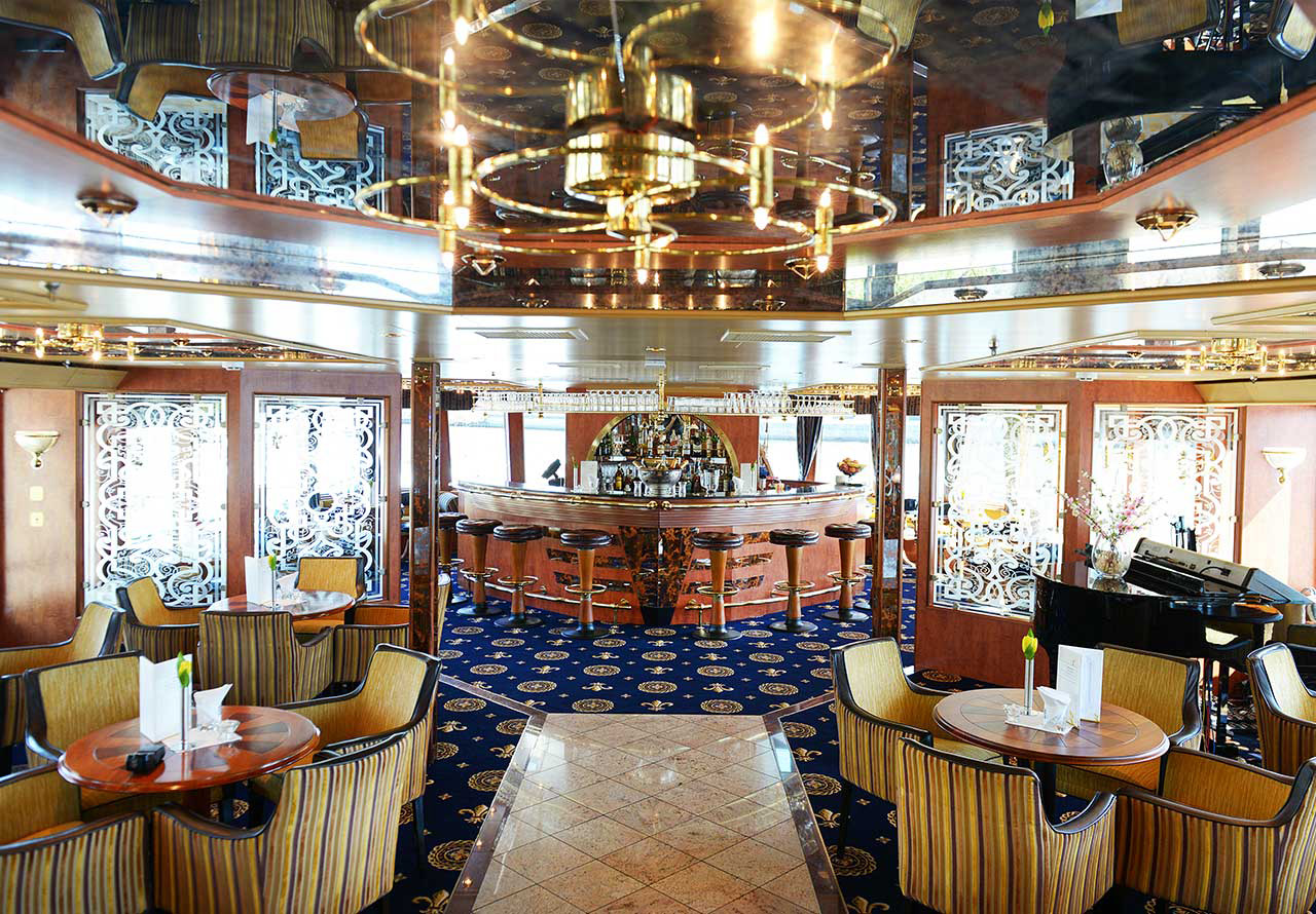 Das Hollywood Theater erstreckt sich stilvoll über zwei Decks. Hier finden Lektorenvorträge statt und am Abend präsentieren Künstler ihr Können auf der Bühne. Auch Frühschoppen gehört zum Reiseprogramm. Vier Klaviere an Bord unterstreichen den hohen Stellenwert der Musik.