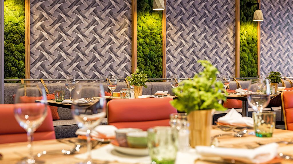 Im Atrium versteckt sich außerdem die Osteria mit italienischen Spezialitäten von Vorspeisen bis zu frisch zubereiteter Pizza und Pasta.